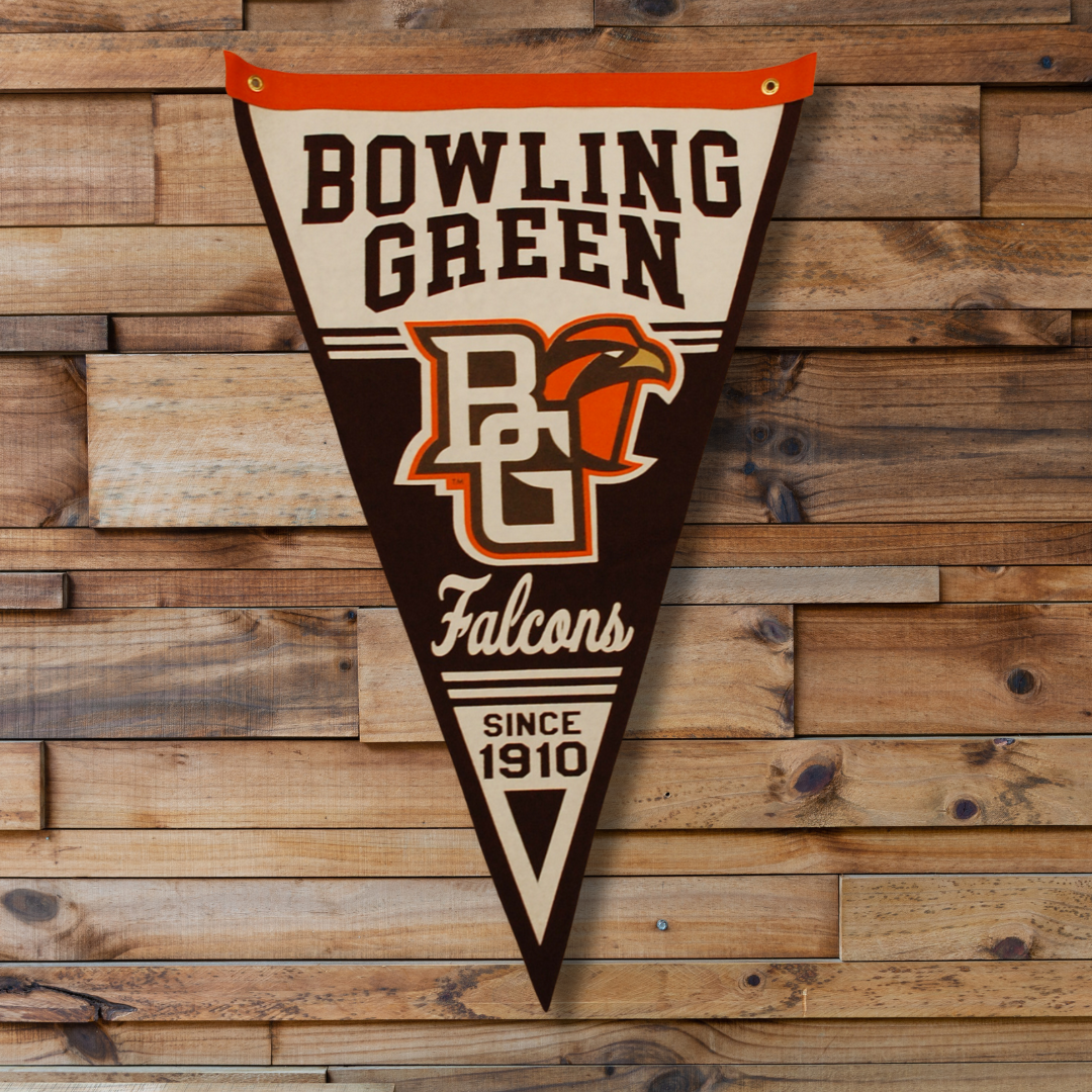 Make a statement with this large 20x30 pennant featuring a soft flocked finish and a peekaboo Falcons design. Bold, classic, and perfect for showing off your Bowling Green pride in any space.